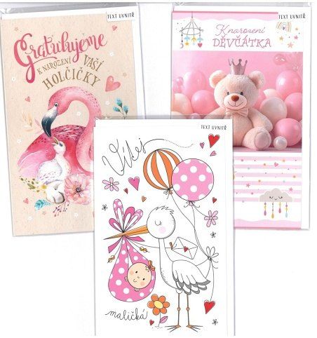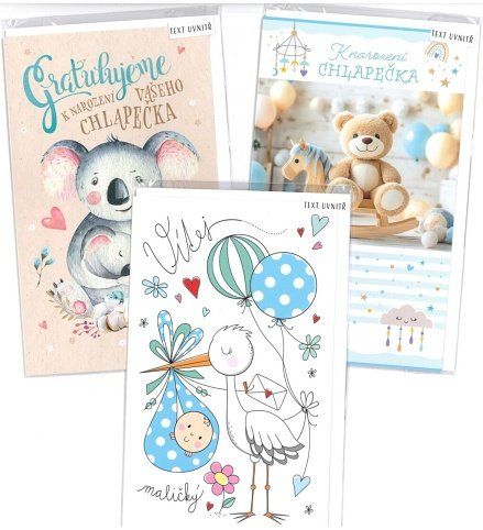 Přání dětské "T" k narození dítěte mix motivů dle aktuální nabídky. Balení obsahuje 10 ks mix