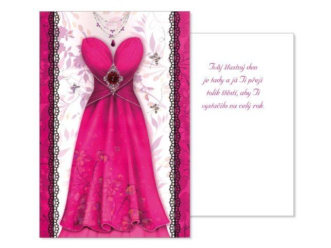 Srdečné blahopřání k narozeninám s textem. Text na přední straně přání: bez textu Text uvnitř přání: Tvůj šťastný den je tady a já Ti přeji tolik štěstí, aby Ti vystačilo na celý rok. Papír: pohlednicový karton 240 g Přání je baleno v sáčku, součástí balení je i dopisní obálka Přání je na obale označené doporučenou prodejní cenou.