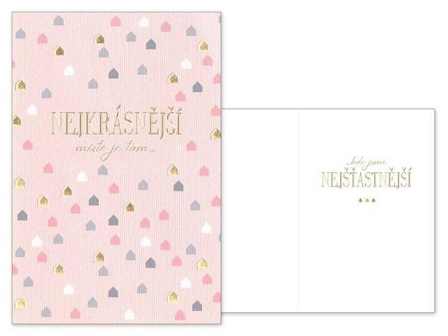 Srdečné přání k narozeninám - Potěšte oslavence a věnujte mu srdečné přání k narozeninám! Text na přední straně: Nejkrásnější místo je tam... Text uvnit přání: ...kde jsme nejšťastnější Nápis je vyrytý zlatým písmem, součástí přání je obálka. Přání je na obale označené doporučenou prodejní cenou.