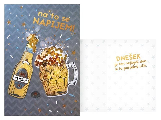Udělejte oslavenci radost originálním narozeninovým přáním s textem. Vhodné zejména pro muže. Text na přání: na to se NAPIJEM Text uvnitř přání: Dnešek je ten nejlepší den si to pořádně užít. Přání je baleno v sáčku, součástí balení je i dopisní obálka.