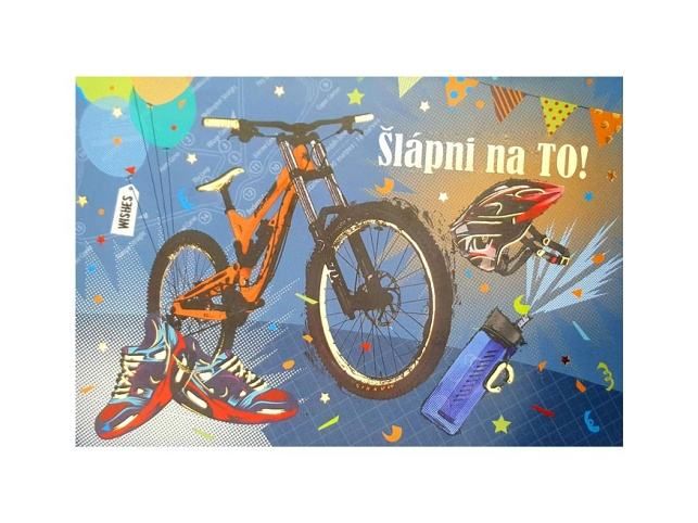 Originální narozeninové přání vhodné zejména pro oslavnce se zájmem o cyklistiku. Text na přání: Šlápni na to! Přání je baleno v sáčku, součástí balení je i dopisní obálka.