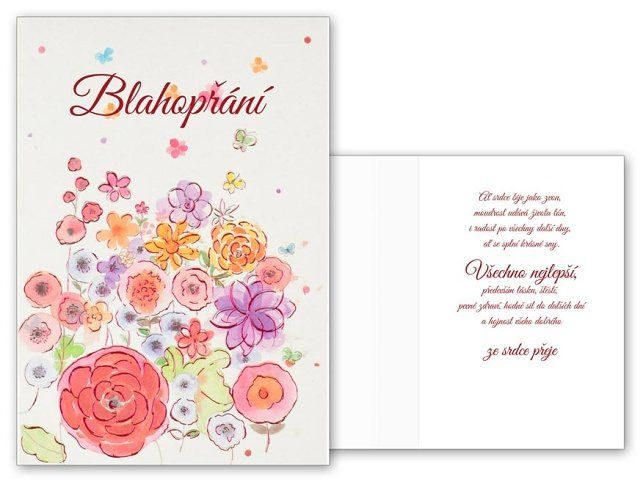 Udělejte oslavenci radost originálním narozeninovým přáním. Text na přání: Blahopřání Text uvnitř přání: Ať srdce bije jako zvon, moudrost udává životu tón, i radost po všechny další dny, ať se splní krásné sny ... Všechno nejlepší, především lásku, štěstí, pevné zdraví, hodně sil do dalších dní a hojnost všeho dobrého ze srdce přeje Přání je baleno v sáčku, součástí balení je i dopisní obálka.