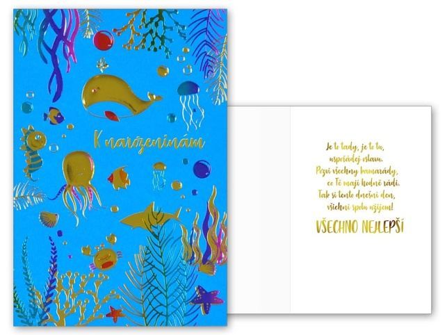 Udělejte oslavenci radost originálním narozeninovým přáním. Text na přední straně přání: K narozeninám Text uvnitř přání: Je to tady, je to tu, uspořádej oslavu. Pozvi všechny kamarády, co Tě mají hodně rádi. Tak si tento dnešní den, všichni spolu užijem! Všechno nejlepší Přání je baleno v sáčku, součástí balení je i dopisní obálka.