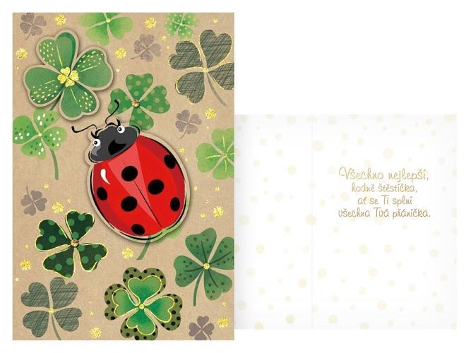 Udělejte oslavenci radost originálním narozeninovým přáním. Text uvnitř přání: Všechno nejlepší, hodně štěstíčka, ať se Ti splní všechna Tvá přáníčka. Přání je baleno v sáčku, součástí balení je i dopisní obálka.