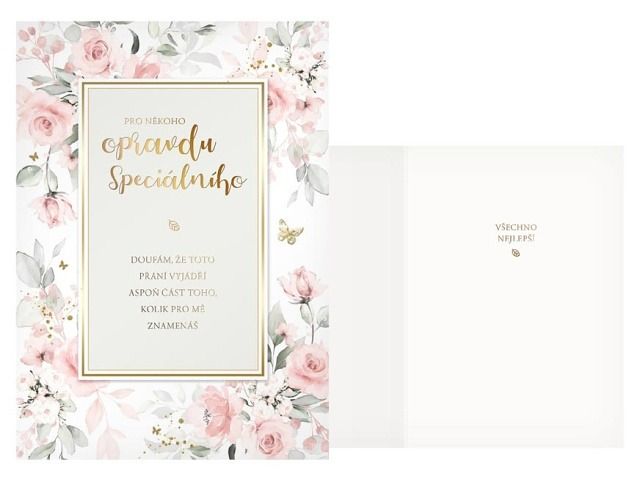 Přání srdečné - Krásné srdečné přání k narozeninám nebo k svátku. Které udělá určitě velkou radost a bude mu tohle přání připomínat radostnou událost. Text na přední straně přání: Pro někoho opravdu speciálního Doufám, že toto přání vyjádří aspoň část toho, kolik pro mě znamenáš Text uvnitř přání: Všechno nejlepší Papír: pohlednicový karton 240g Přání je baleno v sáčku, součástí balení je i dopisní obálka.