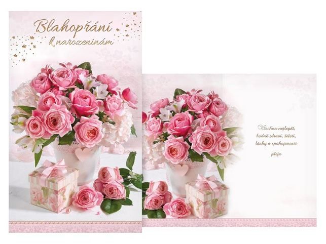 Srdečné přání k narozeninám s květinovým motivem slouží k tomu, abyste mohli oslavenci vyjádřit své upřímné gratulace a popřát vše nejlepší. Je to tradiční způsob, jak někomu ukázat, že na něj myslíte, a podělit se o radost z jeho významného dne. Text na přední straně přání: Blahopřání k narozeninám Text uvnitř přání: Všechno nejlepší, hodně zdraví, štěstí, lásky a spokojenosti přeje Papír: pohlednicový karton Přání je baleno v sáčku, součástí balení je i dopisní obálka. Uvedená cena je za 1 ks.