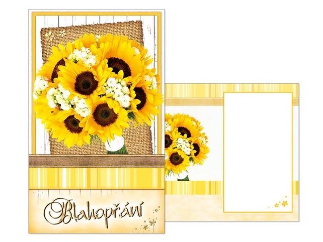 Srdečné blahopřání k narozeninám, svátku, nebo jiné příležitosti bez textu. Text na přední straně přání: Blahopřání Text uvnitř přání: Bez textu. Papír: pohlednicový karton 240 g Přání je baleno v sáčku, součástí balení je i dopisní obálka