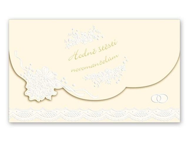 Svatební přáníbez textu - Svatba je příjemná a mimořádná událost a je začátkem nové etapy života. Mezi svatebními dary by nikdy nemělo chybět i přání novomanželům. Udělejte radost novomanželům a věnujte jim přání k jejich svazku, díky kterému si vždy připomenou krásné začátky jejich manželství. Nápis je vyrytý zlatým písmem a přání zdobí okrasné květiny a ornamenty. Text na přední straně přání: Hodně štěstí novomanželům Text uvnitř přání: bez textu Papír: pohlednicový karton 240 g Uvedená cena je za 1 ks. Přání je baleno v sáčku. Součástí přání je i obálka.