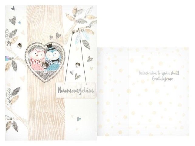 Svatební přání - Svatba je příjemná a mimořádná událost a je začátkem nové etapy života. Mezi svatebními dary by nikdy nemělo chybět i přání novomanželům. Udělejte radost novomanželům a věnujte jim přání k jejich svazku, díky kterému si vždy připomenou krásné začátky jejich manželství. Text na přední straně přání: Novomanželům Text uvnitř přání: Velmi vám to spolu sluší Gratulujeme Přání je baleno v sáčku, součástí balení je i dopisní obálka.