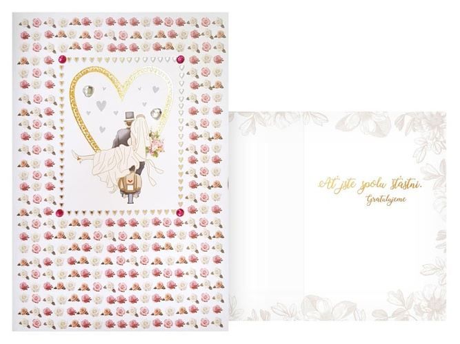 Svatební přání - Svatba je příjemná a mimořádná událost a je začátkem nové etapy života. Mezi svatebními dary by nikdy nemělo chybět i přání novomanželům. Udělejte radost novomanželům a věnujte jim přání k jejich svazku, díky kterému si vždy připomenou krásné začátky jejich manželství. Motiv nevěsty a ženicha na motorce. Text na přední straně přání: Ať jste spolu šťastni Gratulujeme Papír: pohlednicový karton 240 g Uvedená cena je za 1 ks. Přání je baleno v sáčku. Součástí přání je i obálka.