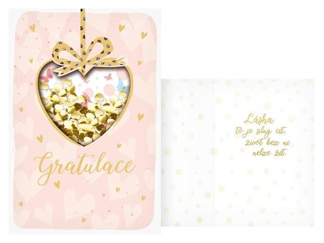 Svatební přání - Svatba je příjemná a mimořádná událost a je začátkem nové etapy života. Mezi svatebními dary by nikdy nemělo chybět i přání novomanželům. Udělejte radost novomanželům a věnujte jim přání k jejich svazku, díky kterému si vždy připomenou krásné začátky jejich manželství. Text na přední straně přání: Gratulace Text uvnitř přání: Láska to je silný cit, život bez ní nelze žít. Přání je baleno v sáčku, součástí balení je i dopisní obálka.