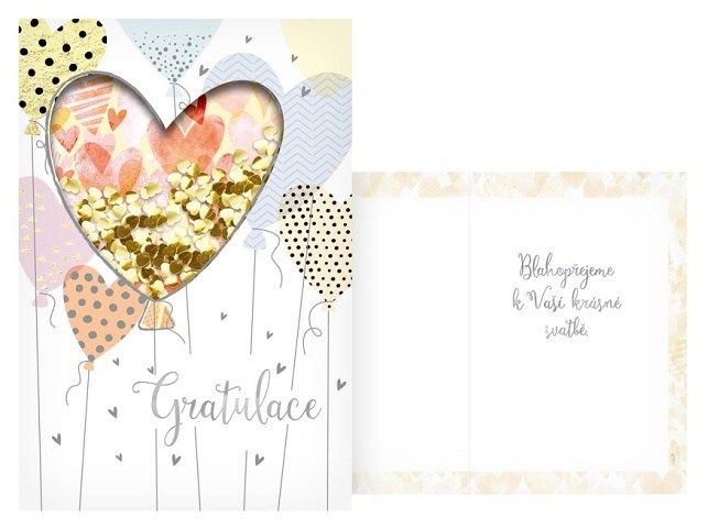 Svatební přání - Svatba je příjemná a mimořádná událost a je začátkem nové etapy života. Mezi svatebními dary by nikdy nemělo chybět i přání novomanželům. Udělejte radost novomanželům a věnujte jim přání k jejich svazku, díky kterému si vždy připomenou krásné začátky jejich manželství. Text na přední straně přání: Gratulace Text uvnitř přání: Blahopřejeme k Vaší krásné svatbě. Přání je baleno v sáčku, součástí balení je i dopisní obálka.