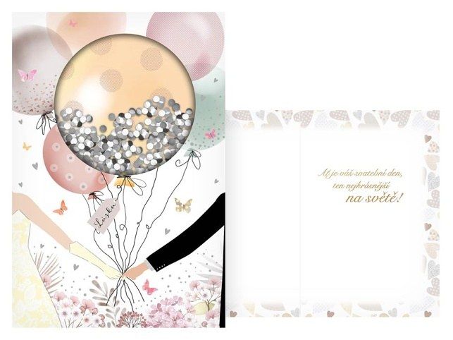 Svatební přání - Svatba je příjemná a mimořádná událost a je začátkem nové etapy života. Mezi svatebními dary by nikdy nemělo chybět i přání novomanželům. Udělejte radost novomanželům a věnujte jim přání k jejich svazku, díky kterému si vždy připomenou krásné začátky jejich manželství. Text na přední straně přání: Láska Text uvnitř přání: Ať je váš svatební den, ten nejkrásnější na světě! Přání je baleno v sáčku, součástí balení je i dopisní obálka.