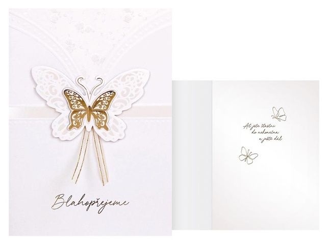 Svatební přání s textem - Svatba je příjemná a mimořádná událost a je začátkem nové etapy života. Mezi svatebními dary by nikdy nemělo chybět i přání novomanželům. Udělejte radost novomanželům a věnujte jim přání k jejich svazku, díky kterému si vždy připomenou krásné začátky jejich manželství. Text na přední straně přání: Blahopřejeme Text uvnitř přání: Ať jste šťastni do nekonečna a ještě dál Papír: pohlednicový karton 240 g Uvedená cena je za 1 ks. Přání je baleno v sáčku. Součástí přání je i obálka.