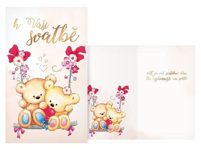 Svatební přání s obrázkem zamilovaných medvídků. Svatba je příjemná a mimořádná událost a je začátkem nové etapy života. Mezi svatebními dary by nikdy nemělo chybět i přání novomanželům. Udělejte radost novomanželům a věnujte jim přání k jejich svazku, díky kterému si vždy připomenou krásné začátky jejich manželství. Text na přední straně přání: k Vaší svatbě Text uvnitř přání: Ať je váš svatební den, ten nejkrásnější na světě! Uvedená cena je za 1 ks. Přání je baleno v sáčku. Součástí přání je i obálka.