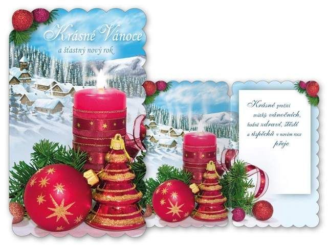 Přání Vánoční - V posledních letech se posílají Vánoční přání spíše jako SMS nebo mailem. Avšak tradiční tištěné přání je daleko osobnější a navíc k němu můžete přidat i vlastnoruční podpis. Nezapomeňte poslat krásné Vánoční přání Vašim známým. Určitě je potěší to, že jste si na ně vzpomněli. Text na přední straně: Krásné Vánoce a šťastný nový rok Text uvnitř přání: Krásné prožití svátku vánočních, hodně zdraví, šestí a úspěchů v novém roce přeje Papír: pohlednicový karton 240 g Přání je baleno v sáčku, součástí balení je i dopisní obálka.