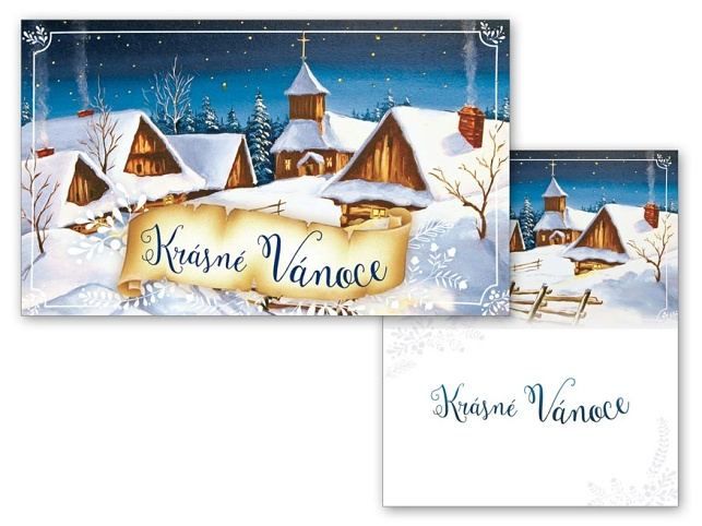 Přání Vánoční - V posledních letech se posílají Vánoční přání spíše jako SMS nebo mailem. Avšak tradiční tištěné přání je daleko osobnější a navíc k němu můžete přidat i vlastnoruční podpis. Nezapomeňte poslat krásné Vánoční přání Vašim známým. Určitě je potěší to, že jste si na ně vzpomněli. Text na přední straně přání: Krásné Vánoce Text uvnitř přání: Krásné Vánoce Papír: pohlednicový karton 240 g Přání je baleno v sáčku, součástí balení je i dopisní obálka.
