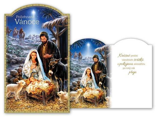 Přání Vánoční - V posledních letech se posílají Vánoční přání spíše jako SMS nebo mailem. Tradiční tištěné přání je, ale daleko osobnější a navíc k němu můžete přidat i vlastnoruční podpis. Nezapomeňte poslat krásné přání s motivem panny Marie, Josefa a Ježíska v jesličkách. Určitě je potěší to, že jste si na ně vzpomněli. Text na přední straně přání: Požehnané Vánoce Text uvnitř přání: Krásné prožití vánočních svátku a pokojnou atmosféru po celý rok přeje Papír: pohlednicový karton 240 g Přání je baleno v sáčku, součástí balení je i dopisní obálka.