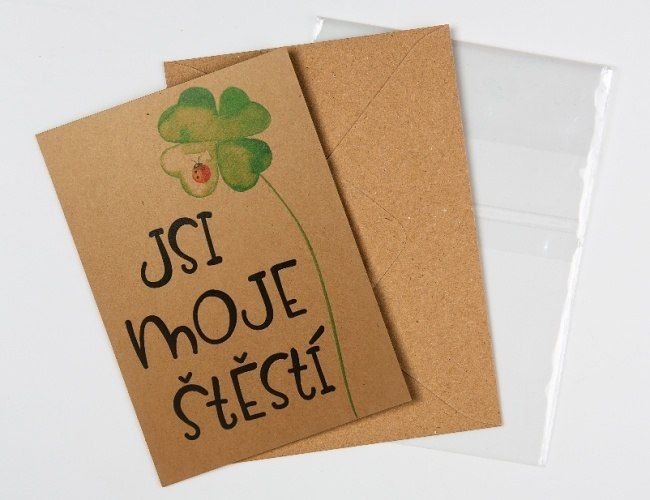 Přáníčko BeBechy - recyklovaný papír - Jsi moje štěstí (čtyřlístek)