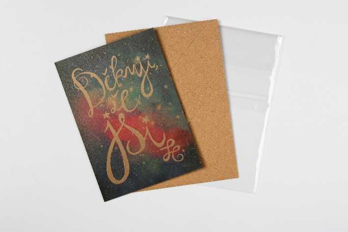 Usmějte se a potěšte se z nezbytných zbytečností – BeBechů. Originální přáníčko pro Váš protějšek s textem „Děkuji, že jsi...“. Ručně psané přáníčko je vyrobeno z recyklovatelného papíru. V ceně balení je recyklovatelná obálka a průsvitná fólie.