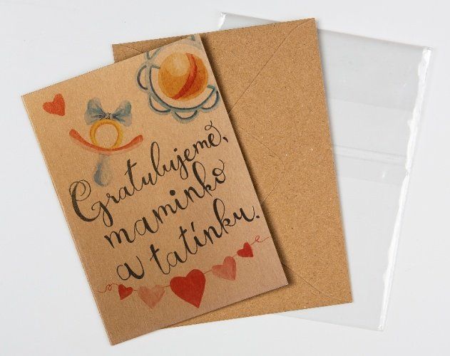 Přáníčko BeBechy - recyklovaný papír - Gratulujeme maminko a tatínku