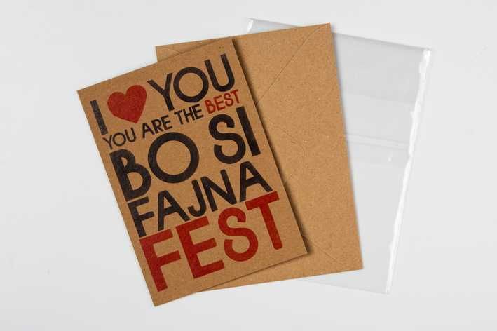 Přáníčko BeBechy - recyklovaný papír - I love you, you are the best, BO SI FAJNA FEST