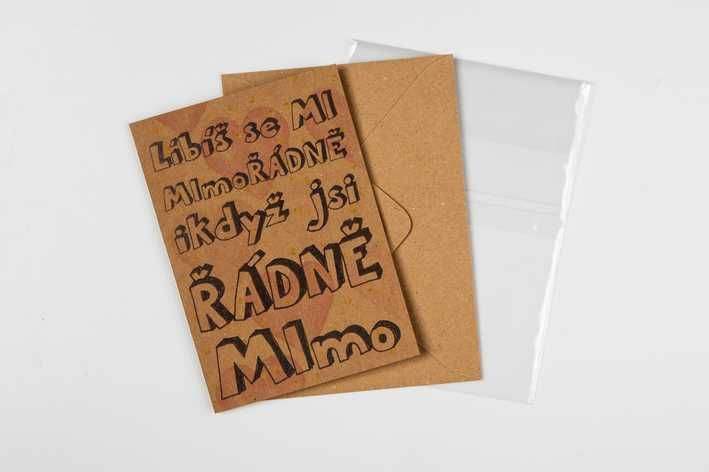 Usmějte se a potěšte se z nezbytných zbytečností – BeBechů. Originální přáníčko pro Váš protějšek s textem „Líbíš se mi mimořádně i když jsi řádně MIMO“. Ručně psané přáníčko je vyrobeno z recyklovatelného papíru. V ceně balení je recyklovatelná obálka a průsvitná fólie.