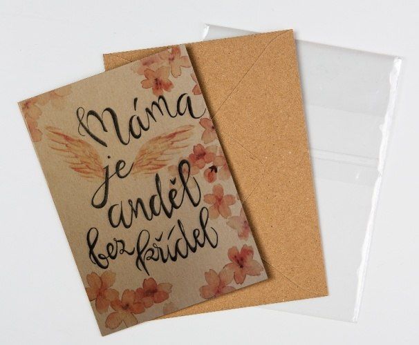 Přáníčko BeBechy - recyklovaný papír - Máma je anděl bez křídel