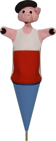 Velký textilní kornoutový maňásek, ovládaný dřevěnou tyčkou.