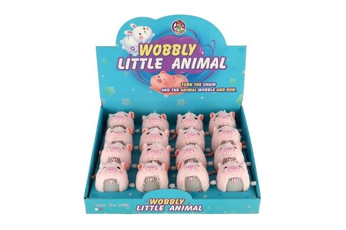 Prasátko je poháněno natahovacím klíčkem, který se používá k "natažení" mechanismu. Po jeho natáhnutí hračka začne chodit nebo se pohybovat, což je pro děti zábavné a fascinující. Plyšová část těla je měkká a příjemná na dotek.
