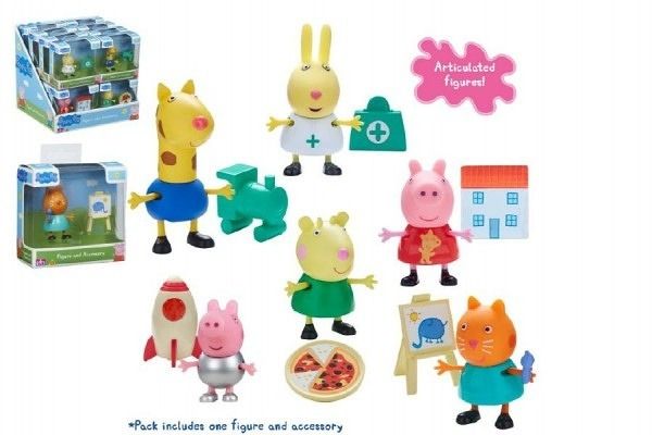 Figurky s doplňky PEPPA PIG. Figurky mají ohebné ruce a nohy. V balení vždy s 1 doplňkem. Různé druhy.