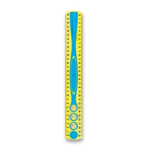 Ohebné pravítko pro začátečníky s protiskluzovou úpravou pro lepší držení. Oboustranné značení, s držadlem. Veselý design a viditelné značení. Délka 30 cm.