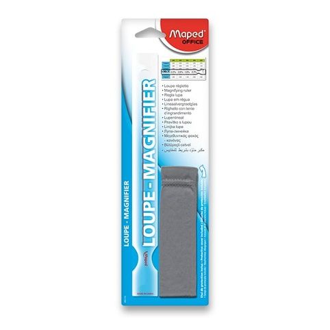 Podtrhávací pravítko s lupou. Upravené konce pro lepší a pohodlnější držení, ryska pro snazší čtení. Délka 25 cm, šířka 2,5 cm. Dodáváno včetně ochranného textilního pouzdra.
