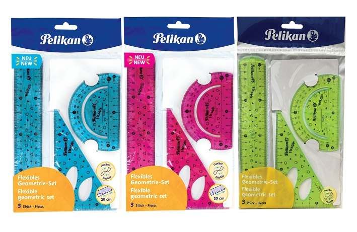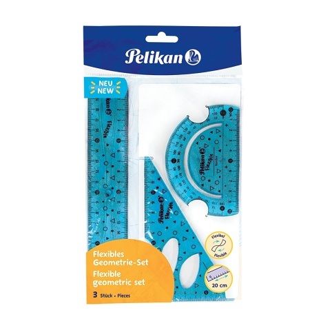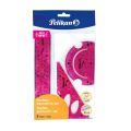 Růžová/modrá/zelená, 1 pravítko (20 cm), 1 trojúhelník, 1 úhloměr, odolné a nerozbitné, vyrobeno z polystyrenu