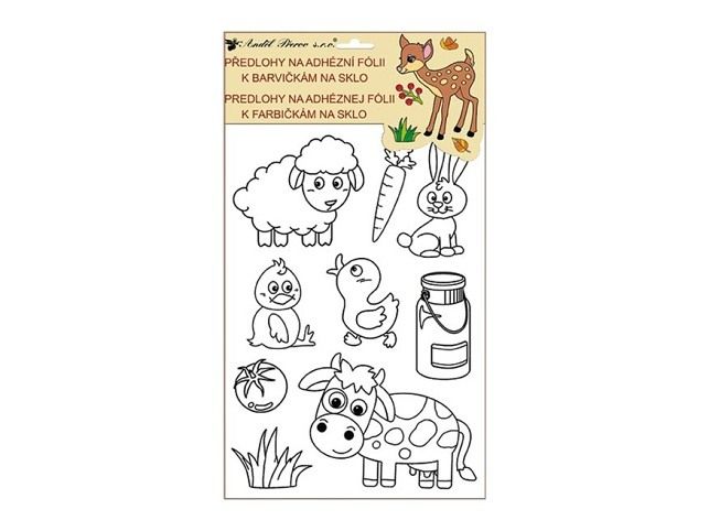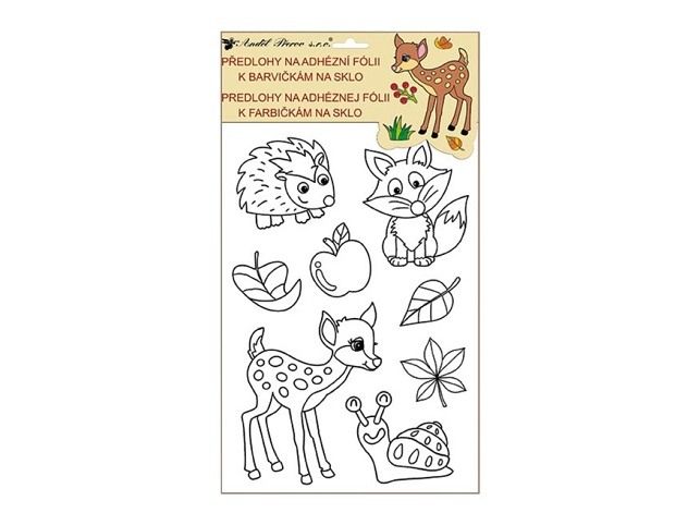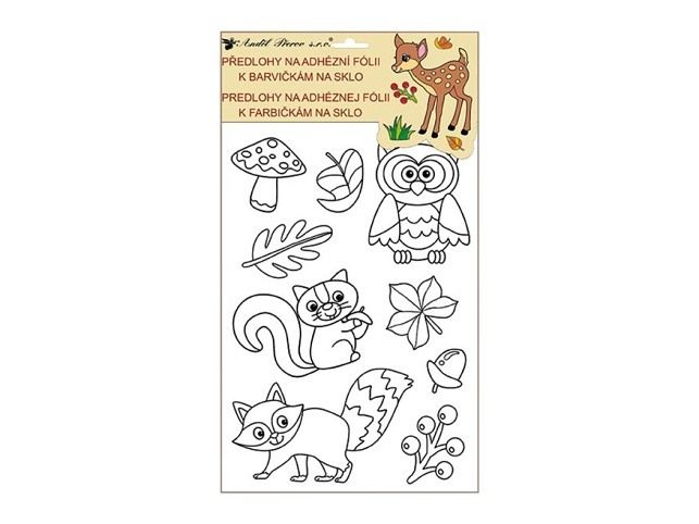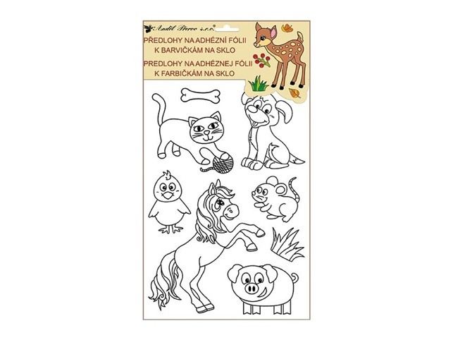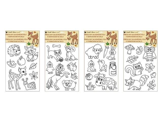 Předkreslené kontury k vybarvení barvičkami na sklo.