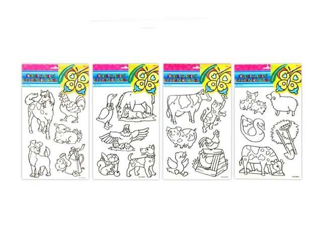 Předloha k barvičkám na sklo na adhezní fólii s motivy hospodářských zvířat. Jeden arch obsahuje 6 obrázků. NÁVOD: Vybarvěte a po uschnutí umístěte na čisté, případně navlhčené sklo nebo jinou čistou hladkou plochu. Obrázek elektrostaticky přilne.
