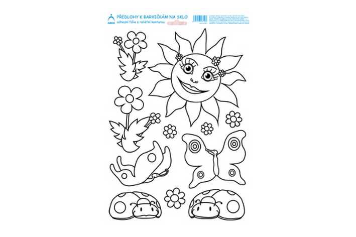 Předlohy k barvičkám na sklo Sluníčko,motýlci a berušky
