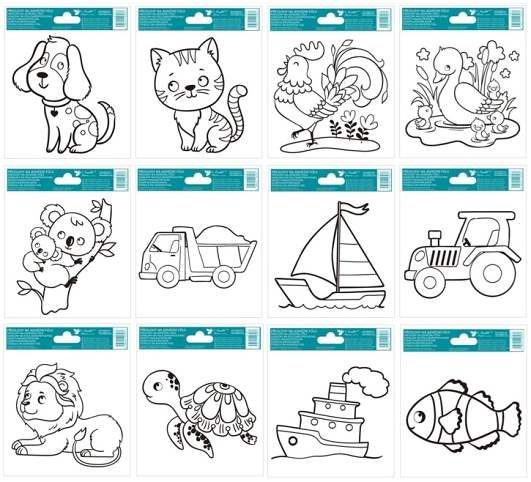 Předlohy s vyvýšenou konturou 14 x 14 cm, mix motivů