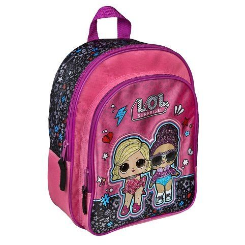 Dětský předškolní batoh s motivem LOL Surprise. Batůžek se skládá z jedné hlavní kapsy a přední menší kapsy. Materiál 100% polyester.