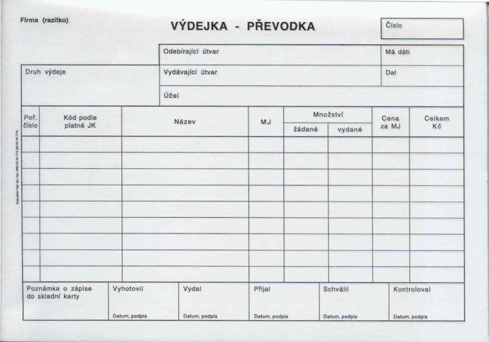 Převodka výdejka A5, propis. /PT230/