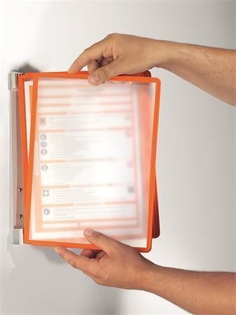 Kovový nástěnný držák s 5 prezentačními kapsami na formát A4. Vhodný pro umístění různých pracovních materiálů. Kapsy chrání dokumenty před znečištěním.