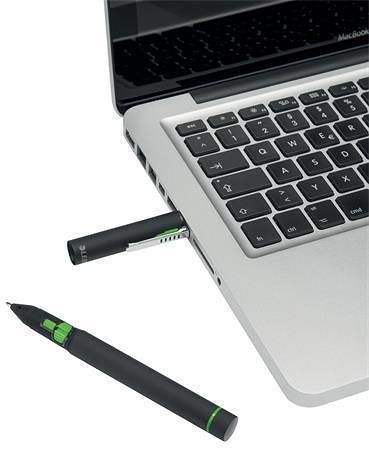 USB přijímač se ukládá dovnitř konce ukazovátka, stačí pouze sundat z pera