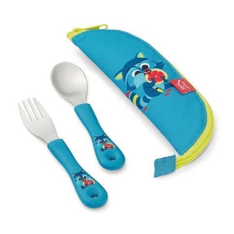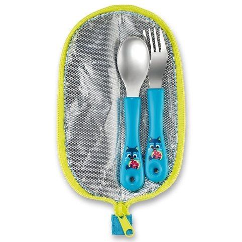 Příbor Maped Picnik z nerezové oceli v pouzdře z kolekce Miniz v designu Raccoon. Pouzdro obsahuje lžičku a vidličku. Textilní pouzdro je na zip a jako vnitřní materiál má hliníkovou fólii pro snadné čistění. Příbory je možné mýt v myčce. Vhodné pro děti od 1 roku.