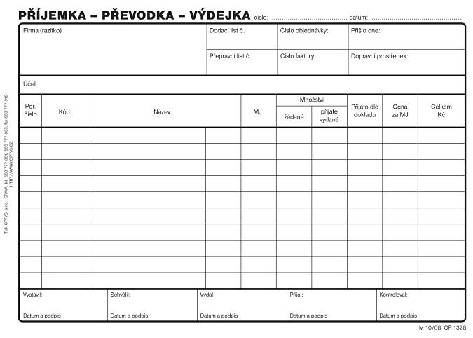 Příjemka-převodka-výdejka, A5, 50 listů, samopropisovací , OPTYS 1328