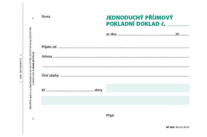 - PAPÍRNICTVÍ / TISKOPISY / ÚČETNÍ A DAŇOVÉ DOKLADY / Příjmové doklady / A6 / OPTYS / KANCELÁŘSKÉ POTŘEBY / TISKOPISY / ÚČETNÍ A DAŇOVÉ DOKLADY / Příjmové doklady / A6 / OPTYS / PAPÍR A PAPÍROVÉ VÝROBKY