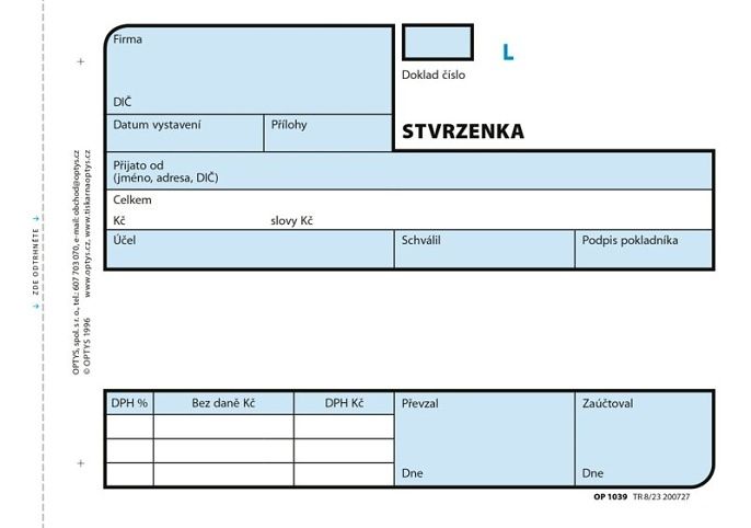 - PAPÍRNICTVÍ / TISKOPISY / ÚČETNÍ A DAŇOVÉ DOKLADY / Příjmové doklady / A6 / OPTYS