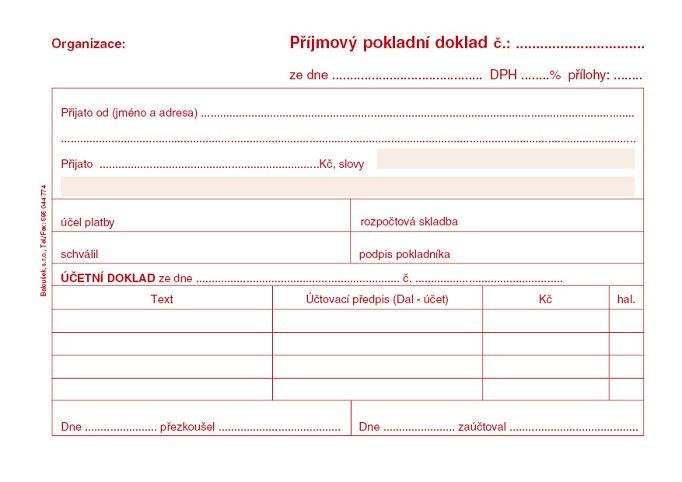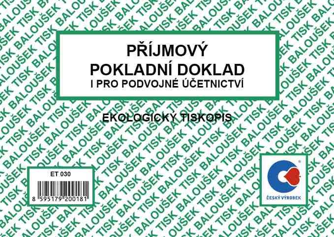 Příjmový pokladní doklad i pro podvojné účetnictví A6 / ET030 / Baloušek tisk