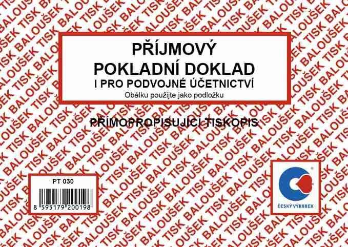 Příjmový pokladní doklad i pro podvojné účetnictví A6 přímopropisující / PT030 / Baloušek