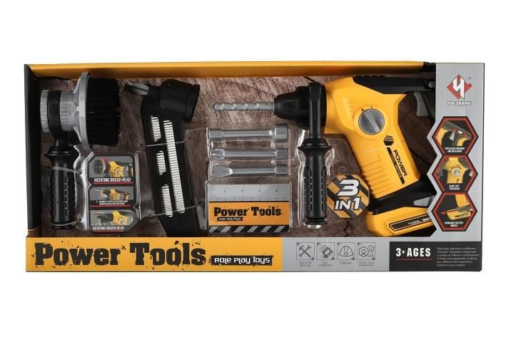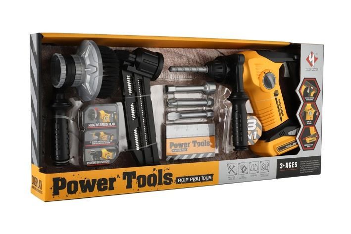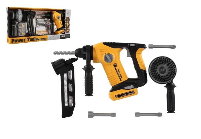 Příklepová vrtačka s doplňky plast 30x18cm na baterie se zvukem v krabici 53x25x7cm