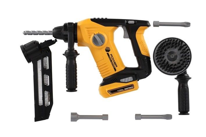Velká sada pro malé kutily obsahuje několik doplňků jako je rotační kartáč, hřebíkovačka a výměnné nástavce vrtačky. Baterie 3x AA nejsou součástí balení.